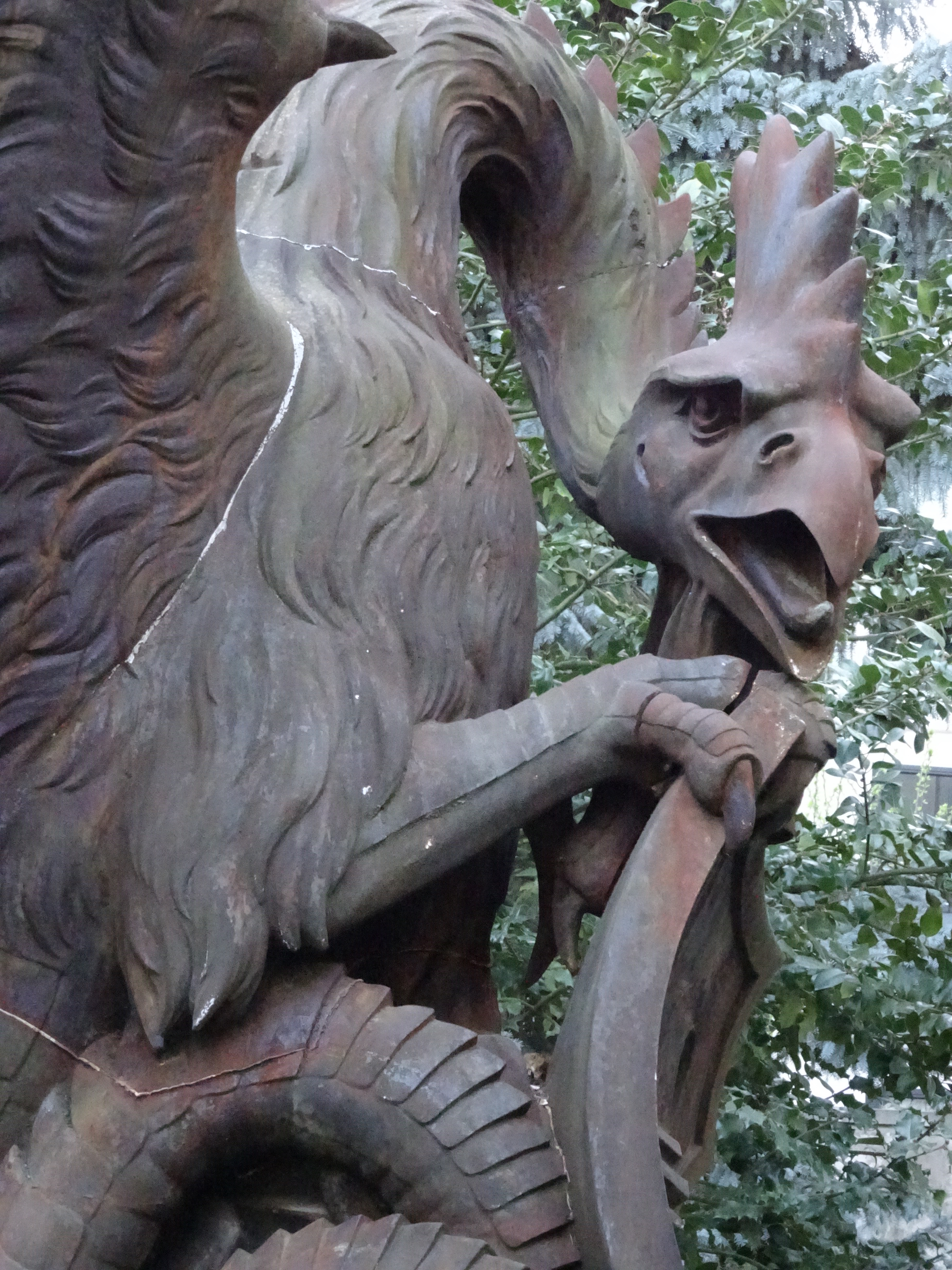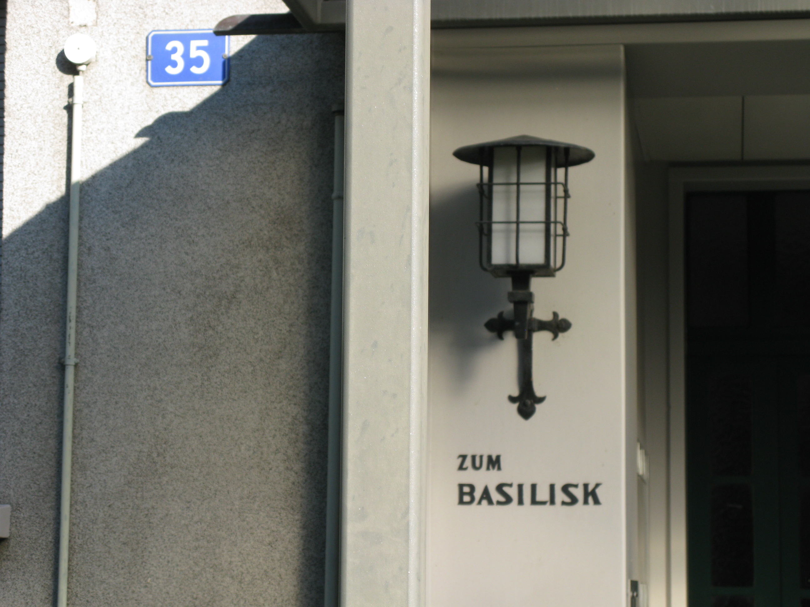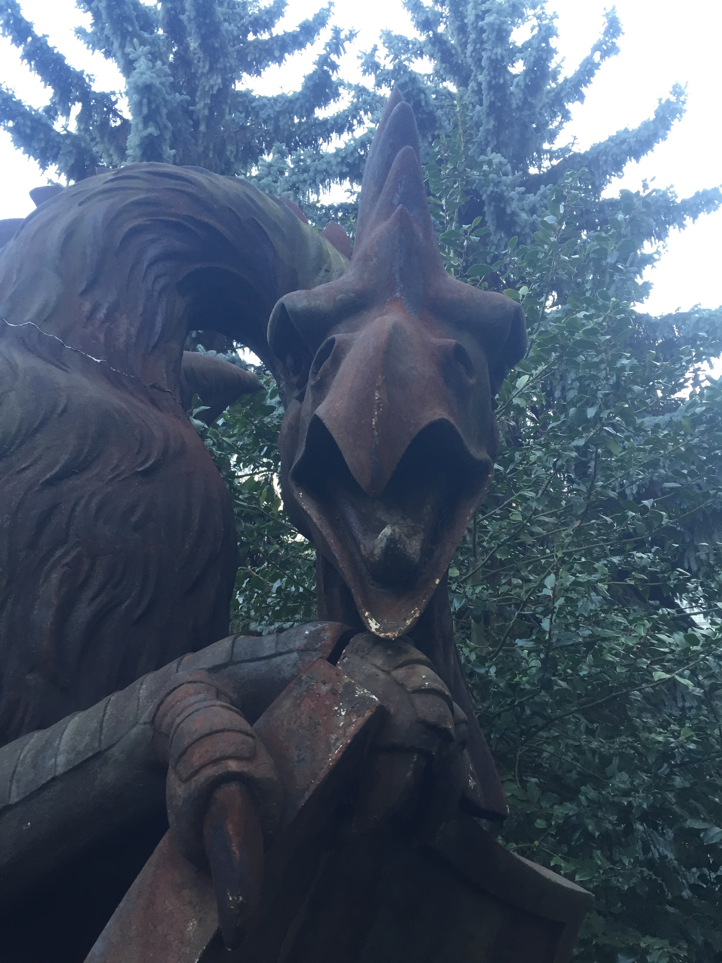 Riesig, rostig und romantisch hockt der Basilisk im Hinterhof des Hauses ‹Zum Basilisk› an der Schüztenmattstrasse 35. Neben der einzigartigen Rostoptik besticht dieser Basilisk durch sein putziges Lauern im Gesträuch. Für die technisch Interessierten sind die Fugen und Nähte des aus zehn Teilen zusammengesetzten Monsters spannend.